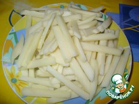 Спустя час после начала варки перловки опустить в кастрюлю нарезанный брусочками картофель. |