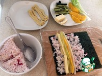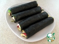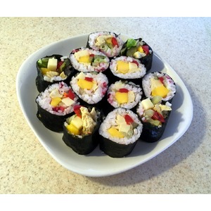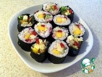 Описание: Кимба́п — популярное корейское блюдо, представляет собой роллы, завернутые в нори (ким), наполненные вареным рисом (пап), с добавлением начинки, нарезанной или выложенной полосками, обычно квашеных овощей, рыбы, морепродуктов, ветчины и омлета. Основное отличие кимбапа от суши - в кимбапе не используется сырая рыба. Предлагаю Вам попробовать мой вариант с перцем и маринованным огурцом. Вместо квашенных овощей используется маринованный огурец, а в качестве источника белка - омлет. Всем любителям суши рекомендую отведать и кимбап тоже.