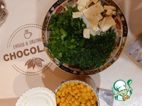 Готовое пюре посолить-поперчить по вкусу, добавить кукурузу, сыр для супа и соуса (я покупаю "Карат" в "Пятерочке"), порезанный кубиками, кусочек сливочного масла и зелень. |