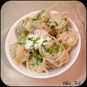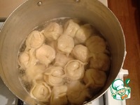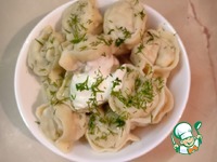 Варить пельмени в бульоне или просто в воде 5-7мин. Перед подачей полить растопленным сливочным маслом или сметаной, посыпать свежей зеленью. |