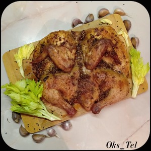 Описание: Мяско получается очень нежным, ароматным и сочным. Корочка хрустящая и безумно вкусная, можно одному легко целиком съесть целого цыпленка - это ну очень вкусно. Вы обязательно должны это попробовать.