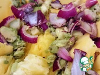 В салатнице соединить консервированный нут с манго, авокадо, красным луком. |