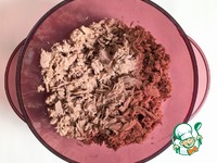 Тунец выложить в глубокую миску, раздавить вилкой. |