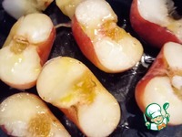 Разделить персики на две половинки, вынуть косточки, спрыснуть растительным масло и отправить в духовку на 25 минут при 200C. |