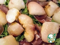 Сочные зажаренные персики добавить к рукколе и прошутто. |