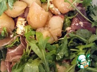 В салатницу выложить рукколу и прошутто (или хамон) |