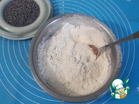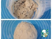 Добавить вторую часть мучной смеси. Если тесто получается жидкое, то добавьте еще немного муки, скатайте тесто в шар. |