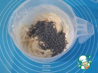 К яично-масляной массе добавить половину мучной, перемешать и всыпать шоколадные капли, перемешать. |