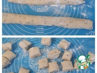 Нарежьте тесто на небольшие равные кусочки. У меня получилось 22 штуки. Вес кусочков регулируйте сами, можно сделать печенье разного размера. |
