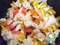 Добавить помидоры, бальзамик, соль и оливковое масло. |