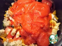 Соединить в кастрюле огурец, перец болгарский, лук, хлеб, арбуз, чеснок и красный жгучий перец. |