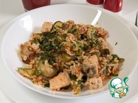 Описание: Обожаю рецепты два в одном и увидев в журнале это блюдо, сразу же прихватила. В процессе приготовления внесла изменения, так как было огромное количество цукини. Полезно, просто и очень вкусно – просто идеальное блюдо для напряженных или жарких дней.