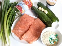 Приготовить ингредиенты. Цукини, лук и лосось помыть под проточной водой и высушить. Рис лучше взять быстрого приготовления. |