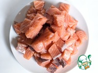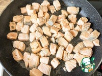 В растительном масле обжарить лосось до зарумянивания минуты 2-3, до готовности не надо, убрать лосось со сковороды. |