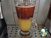 Венец сего творения - горячий кофе. С растворимым тоже можно. Перемешайте слои, чтобы не выпить весь сироп сразу!) Он осядет на дно. Наслаждайтесь прохлаждающе-освежающим чудо-напитком! |