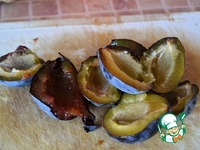 Оставшиеся свежие сливы также разрезать пополам, косточку удалить. |
