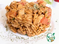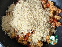 Сразу же добавить пасту орзо и жарить ещё пару минут, постоянно помешивая. У меня паста рисони, это тоже самое. |