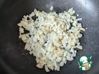 Готовить лучше в глубокой сковороде или чугунке, я готовлю в воке. Лук и чеснок нарезать кубиками и поджарить в растительном масле. |