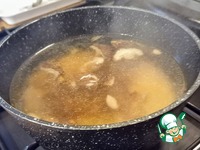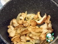В казане разогреть оливковое масло на среднем огне и жарить лук до мягкости минут 5. Увеличить огонь и готовить грибы шиитаке 3-4 минуты до золотистой корочки. |