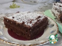 Этим кремом я промазала коржи, сверху посыпала кокосовой стружкой. Корж пекла по рецепту "Шоколадный кекс с тыквой". |