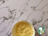Приготовим крошку для посыпки пирога. Перемешиваем муку с сахаром. Затем добавим сливочное масло и перетрем в крошку. |