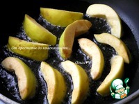 Айву разрежьте на 8 частей, удалив сердцевину, обжарьте на растительном масле до румяности. |