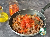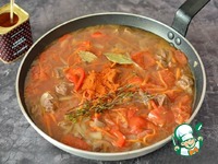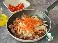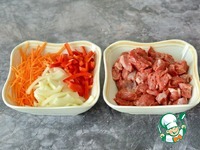 Перед приготовлением мясо ополосните холодной водой и обсушите бумажным полотенцем. Все овощи помойте и очистите. Сладкий перец обязательно берите ярко-красного цвета, он более сладкий и от него также зависит цвет гуляша. Что касается томатов, то тут особых требований нет. Есть свежие? Берите свежие. Если свежих томатов не оказалось, то используйте резанные томаты в собственном соку, можно взять замороженные, если они у вас есть, или использовать томатное пюре. |