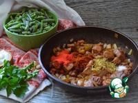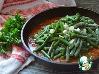 Добавить стручковую фасоль, слайсы 1 зубка чеснока, перемешать. Тушить ещё 10 минут. |