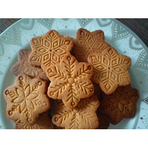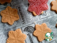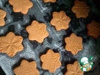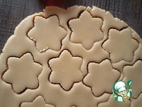 Раскатать в пласт 0.5 см, вырезать печенье. Тесто получается достаточно хрупким, лучше переносить печеньки на противень лопаткой или ножом. У меня получилось 20 небольших печенек-снежинок. |