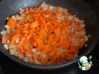 Овощи моем, чистим. Мелкими кубиками режем морковь, лук, болгарский перец и чеснок. |