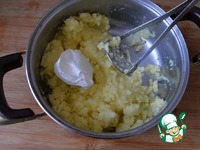 Добавляем в картофель сливки или сметану, тщательно перемешиваем, чтобы не оставалось кусочков картофеля. |