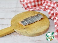 Филе сельди проверьте на наличие косточек и нарежьте на ровные кусочки. |