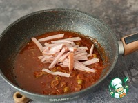 Соус доведите до вкуса, добавив соль, сахар и итальянские травы. Прокипятите 1-2 минуты и добавьте нарезанную соломкой ветчину.