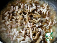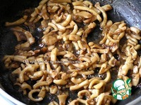 Добавьте нарезанные полосками кальмары. |