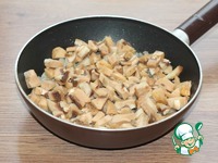 8. Пока жарятся котлеты, приготовим соус для гарнира. Лук и грибы нарезаем кубиком. На разогретом растительном масле обжариваем до золотистости лук, минуты 3. |