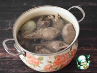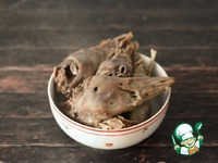 Итак, начнём с самого главного, с варки бульона из утиных голов. Для начала утиные головы разморозьте, если они были у вас в заморозке. |