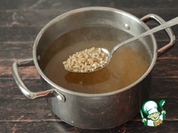 В бульон положите перловку, варите её на среднем огне около 20-30 минут до мягкости. |