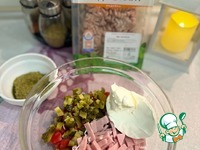 Для начинки, в глубокой емкости соединить нарезанные огурчики, помидоры, ветчину, творожный сыр, соль, перец. Все соединить в однородную массу |