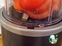 Добавить зиру, куркуму, перец, соль, а также свежее томатное пюрэ из блендера.. Перемешать, накрыть крышкой наполовину и готовить 10 минут. |