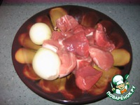 Берем мясо свинины и говядины примерно в равных пропорциях, я брала гуляш (можно смешанный фарш) + репчатый лук |