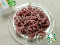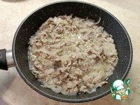 Обжарить лук с мясом до готовности. Масла должно быть приличное количество, т. к. это будет заправка для салата. |