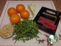 Для приготовления салата понадобятся: - индейка бедра сыровяленая, - мандарины, - сыр с голубой плесенью, - руккола, - орешки кедровые |