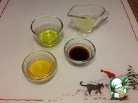 Для заправки понадобиться: - масло оливковое - салатное, - соевый соус, - мед, - сок лимона |