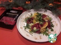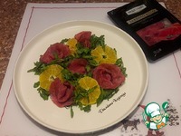 Описание: Увидела этот рецепт на сайте, и поняла - это моё! Люблю рукколу, сыр с плесенью, мандарины, орешки! А вот сыровяленое мясо индейки в этом салате - пришлось к стати. Попробовала впервые - сказочно вкусно! Салатик получился волшебно вкусным с такими классными ингредиентами, с бомбически вкусной заправкой - этот салатик - № 1 на Новогоднем столе