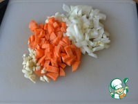 Морковь, лук и чеснок чистим. Морковь режем кубиками или брусочками, лук кубиками, чеснок мелкими кубиками. |