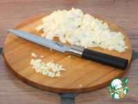 6... и лук - кубиками. Мелко рубим чеснок. |