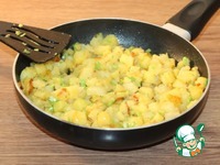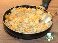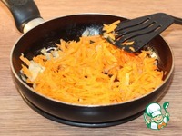 10. На разогретом растительном масле (2 ст. л.) обжариваем репчатый лук (3 мин.). Добавляем чеснок, жарим до появления аромата, минуты 2. Затем выкладываем морковь и пассеруем минуты 3. |
