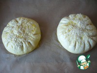 Смажьте слойки яичным желтком и посыпьте кунжутом. Выпекайте при температуре 180 градусов, 20-25 минут (ориентируйтесь на свою духовку). |