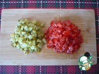 Маринованные огурцы и помидоры мелко нарежьте. |