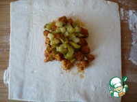 Описание: Порционная выпечка и теплые закуски - хорошая альтернатива большим миксам с салатами. Такие мини-блюда можно перехватить на бегу, даже не присаживаясь за стол. Слойки готовятся из замороженного слоеного бездрожжевого теста и наполнены самой рождественской начинкой - индейкой, ароматными приправами с чесночным соусом, помидорами, маринованными огурцами и сыром. Поверьте, ваши гости быстро оценят их вкус!